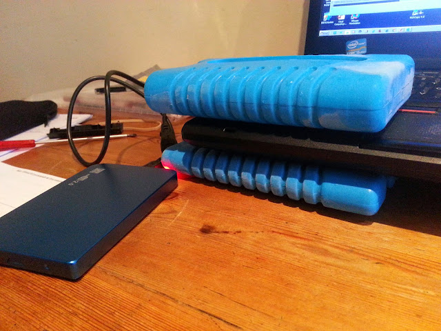 So I restarted the laptop and recommenced the data copying. About 15 minutes later the disk failed again. I went through this cycle a few more times but I wasn't making much headway with my backup, and I was worried about the larger files I needed to copy.